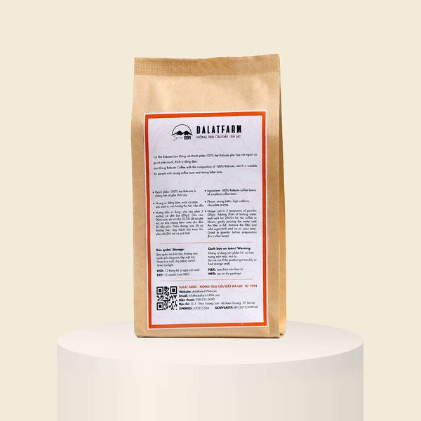 Cà phê Robusta Lâm Đồng rang mộc sạch nguyên chất - Túi 250Gr (Dạng Bột)