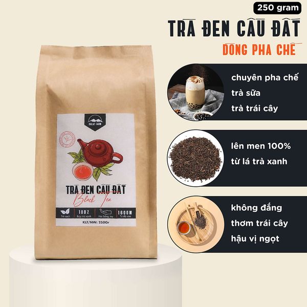 Trà Đen Cầu Đất DalatFarm - Túi 250Gr (Hồng Trà - Black Tea nguyên liệu pha chế trà sữa trà đào)